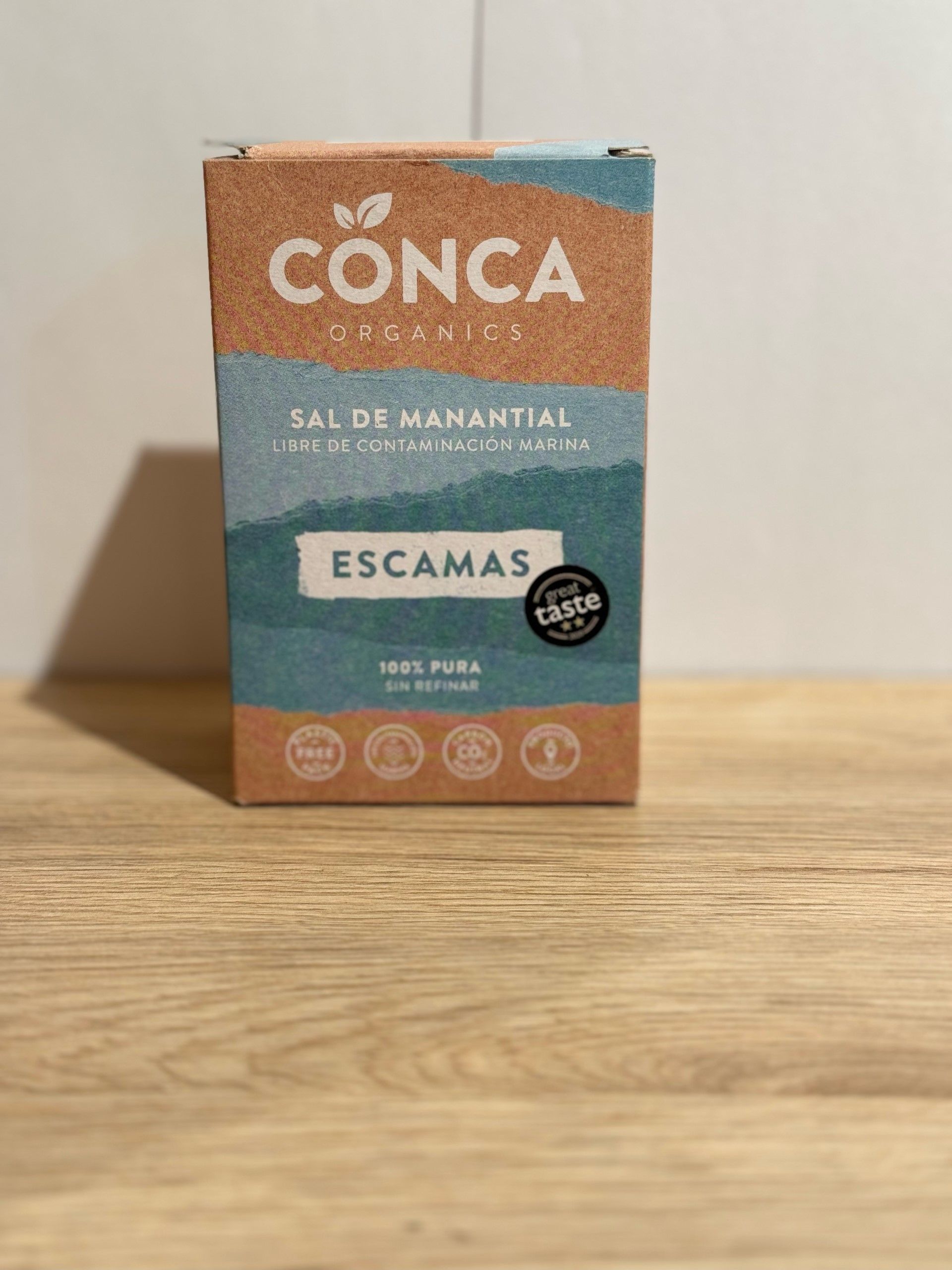 • Ingredientes ecológicos: sal en escamas de manantial.